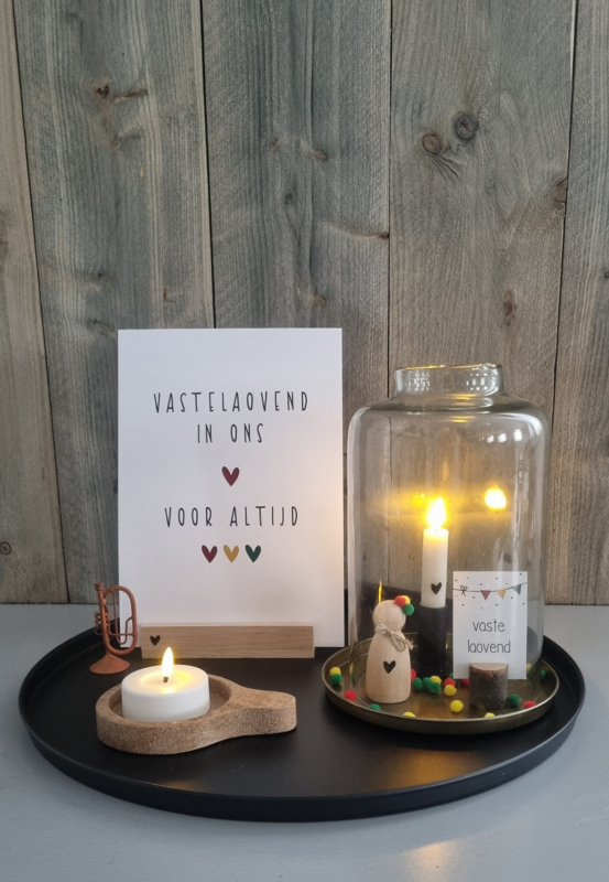 OverzichtWitte A4 Carnavals kaart met de tekst "Vastelaovend in ons hart""