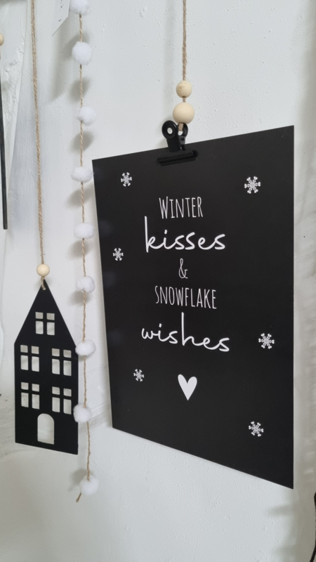 Je hebt keuze uit 2 verschillende A4 kaarten: winter (zwart) of winter kisses & snowfake wishes (dubbelzijdig gedrukt, zwart/wit)