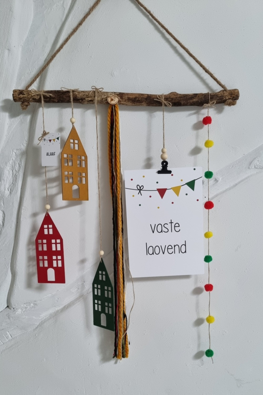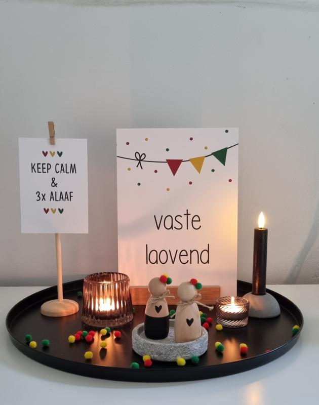 OverzichtWitte A4 Carnavals kaart met de tekst "Vastelaovend"