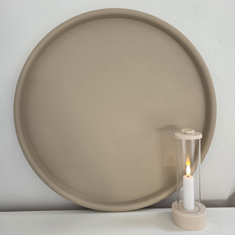 Metalen schaal in gebroken wit en taupe 50 cm met opstaande ronde rand