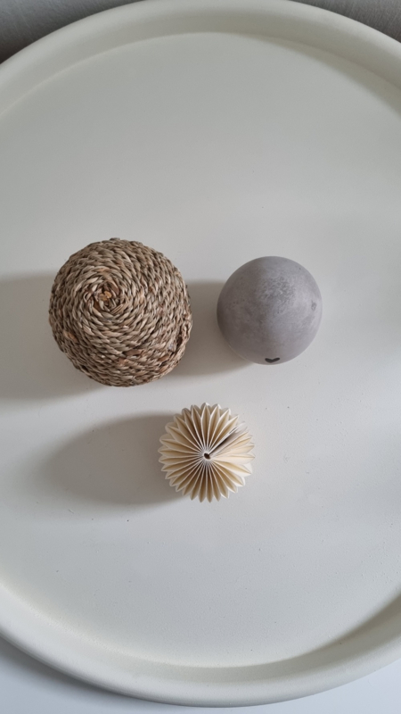 De metalen schaal is een mooie basis woondecoratie.