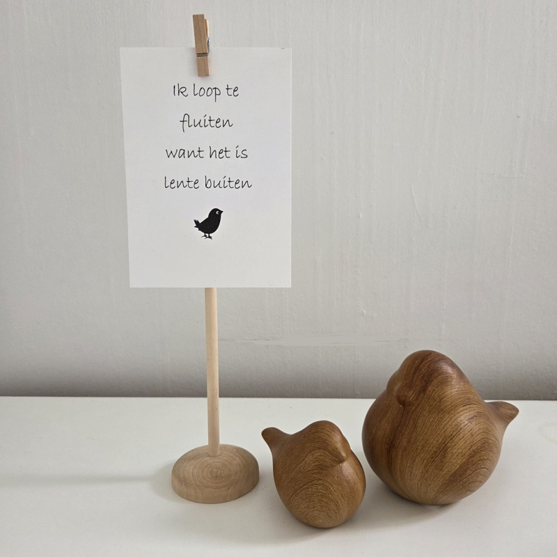 Houten kaartenhouder standaard met knijpertje voor A6 kaarten (excl. kaart)