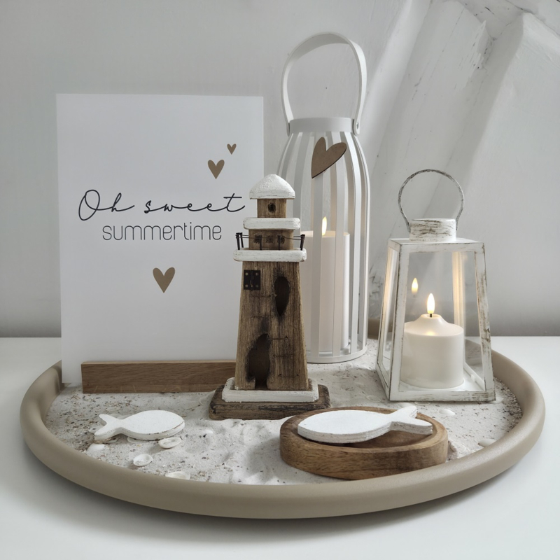 LED lantaarn wit voor binnenshuis gebruik. Deze lantaarn heeft een beach look door dat de lantaarn een matte afwerking heeft met een white wash effect. Ideaal om te combineren met bijvoorbeeld martiem accesoires zoals een boot, vissen, vuurtoren en zand met schelpen.