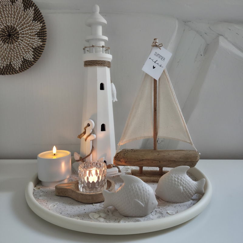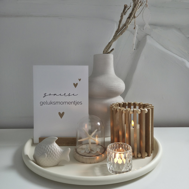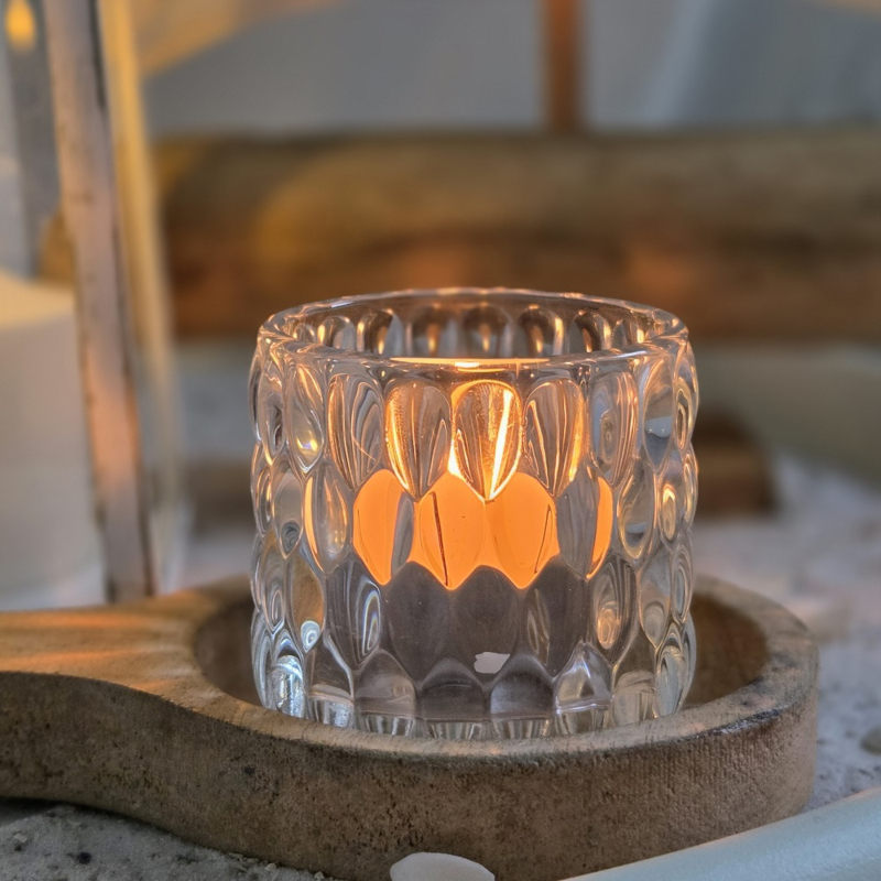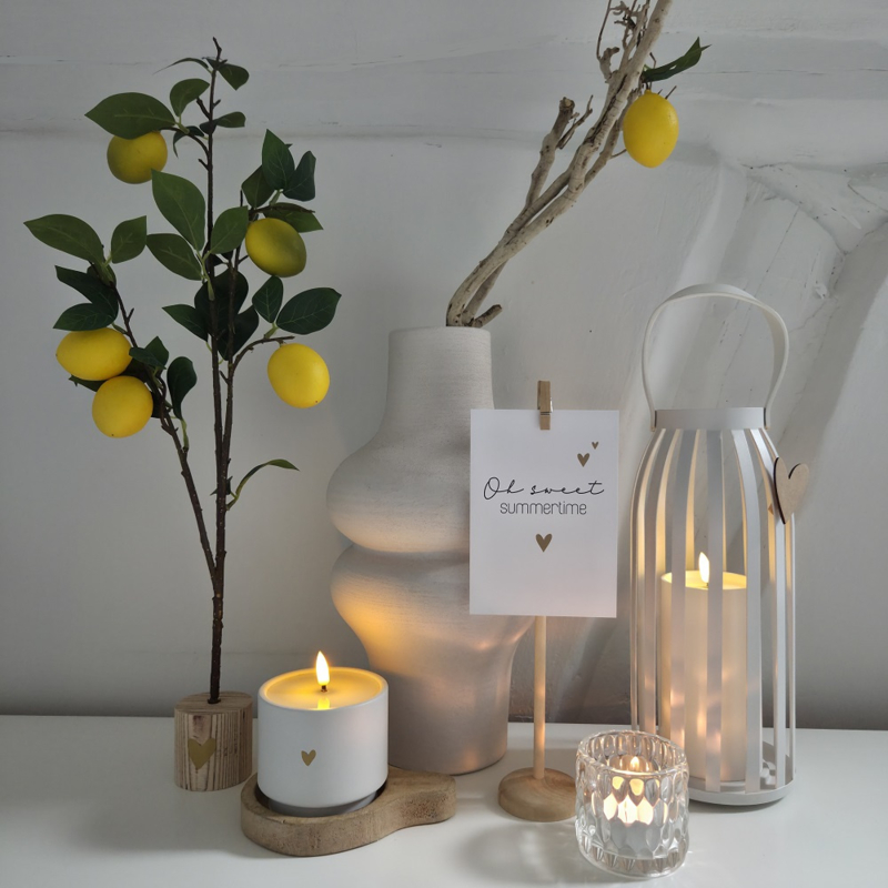 Maak je tuin, terras of balkon nog gezelliger met deze leuke zomerse waxinelichthouder. De glazen theelichthouder is geschikt voor (LED) waxinelichtjes en geeft door het glasmotief een mooi speels effect qua licht en sfeer.