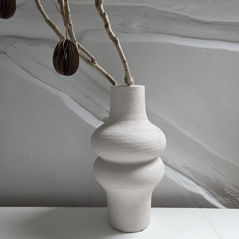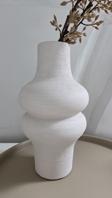 Deze witte structuur vaas is eenabsolute must-have voor liefhebbers van warme, stijlvolle accenten in huis. Met zijn elegante, hoge bolvorm brengt deze vaas ditect sfeer en klasse in elk interieur.
