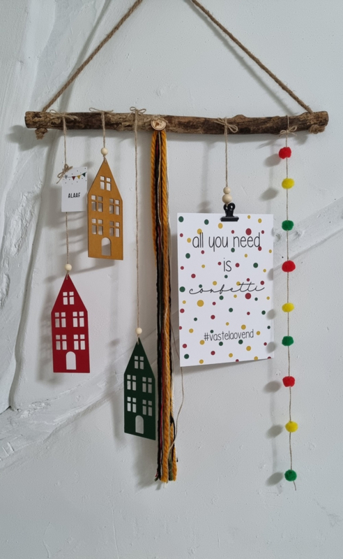 OverzichtWitte A4 Carnavals kaart met de tekst "All you need is confetti"
